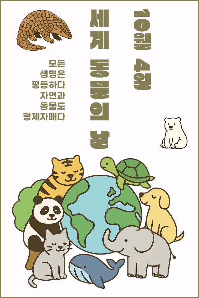 ‘세계 동물의 날’은 인간과 동물이 함께 살아가는 세상에 대한 약속을 되새기는 날입니다. 고양이, 개, 북극곰, 코끼리에 이르기까지 다양한 기념일이 존재하는 것은 결국 모든 생명이 존중받아야 한다는 공통의 메시지를 담고 있습니다. 동물이 행복한 세상이 인간도 행복한 세상이라는 진리를 우리는 잊지 말아야겠습니다.
