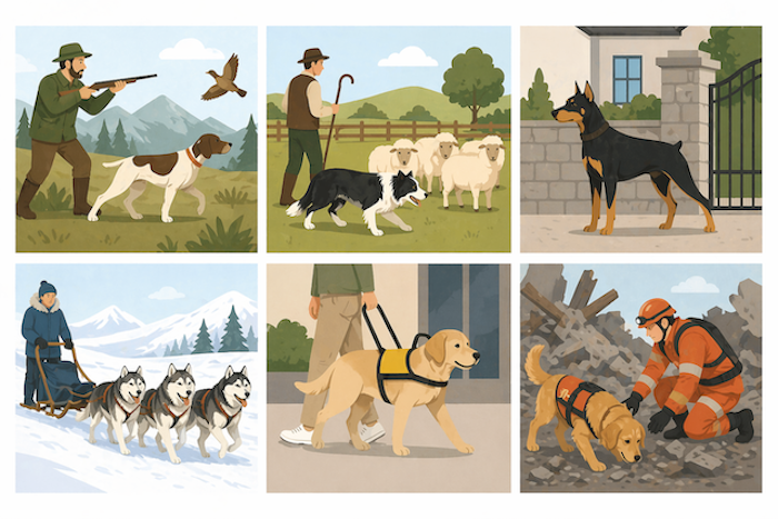 개는 아주 오래전부터 사냥, 목축, 경비, 썰매 끌기 등 매우 다양하고 구체적인 업무를 충실히 수행하며 인간과 살아왔다. 이에 인간은 특정 업무에 최적화된 개들을 적극적으로 개발하는 데 열을 올렸으니, 이때가 19세기 후반부터 20세기 초반 무렵이다.