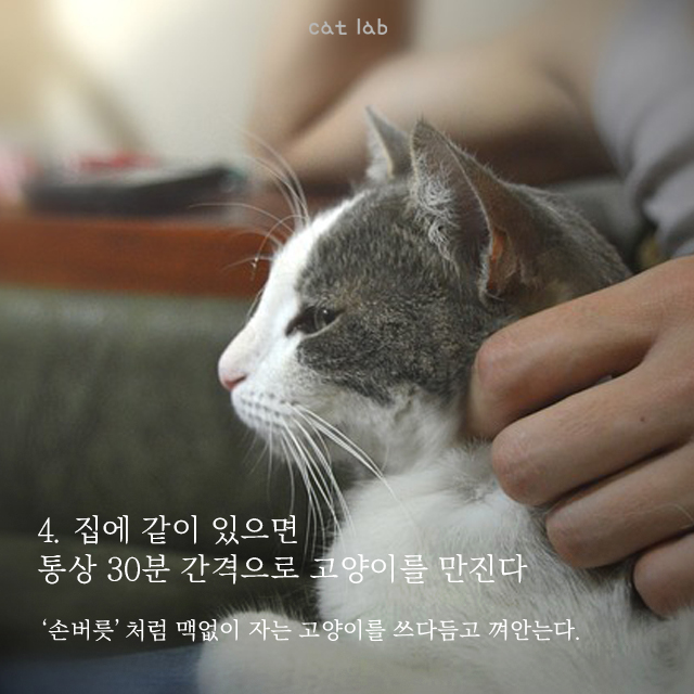 4. 집에 같이 있으면 통상 30분 간격으로 고양이를 만진다