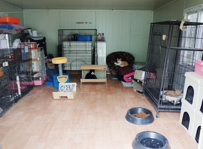 △ 묘사 철거로, 중성화되지 않은 고양이들은 3단 케이지 넣어져 방사장에 합사되었다.