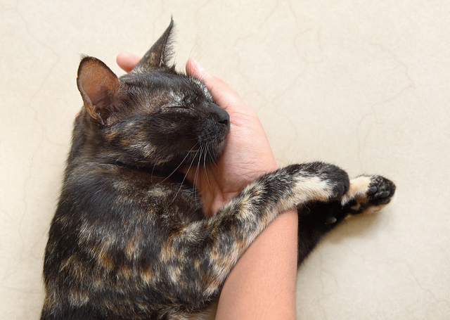 고양이의 얼굴에는 페로몬 분비샘이 집중되어 있다. 따라서 고양이가 집사 몸에 얼굴을 비비거나 붙어 자는 행동은 일종의 영역표시이기도 하다. “이 집사는 내 사람”이라는 선언이며, 집사를 자신의 영역 안에서 가장 중요한 존재로 인식하고 있다는 뜻이다.