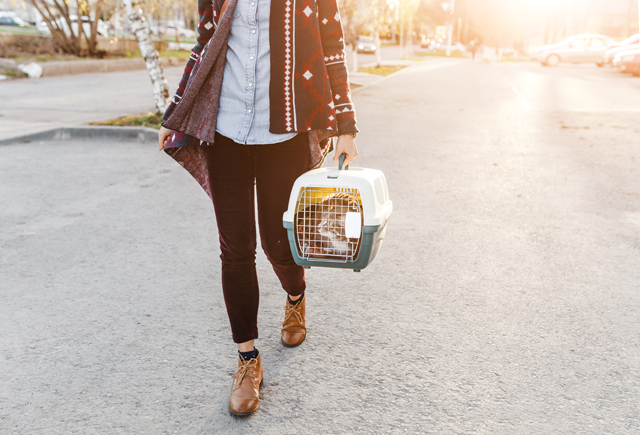 이동 수단으로써는 자가용이나 도보가 아무래도 고양이가 스트레스를 덜 느낍니다. 도보로 이동할 경우에는 이동장을 손으로 드는 것보다 카트를 이용하는 걸 추천합니다. 흔들림이 적고 더 안정적이기 때문입니다. 만약 대중교통을 이용해야 한다면 출퇴근 시간대는 피합니다.