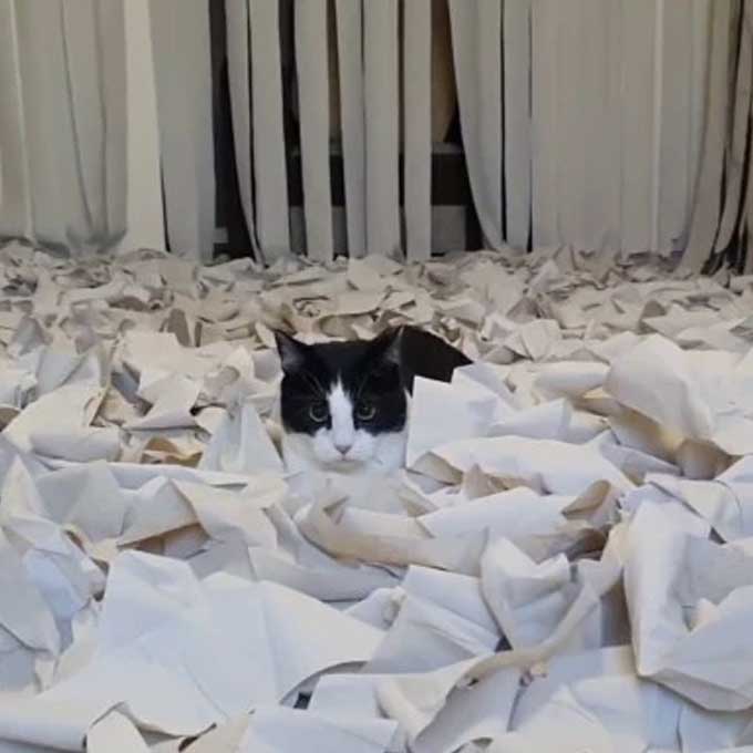 반려묘 위해 방 전체를 화장지로 꾸며준 집사